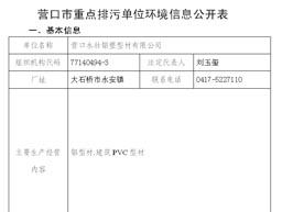 營口市重點排污單位環境信息公開表